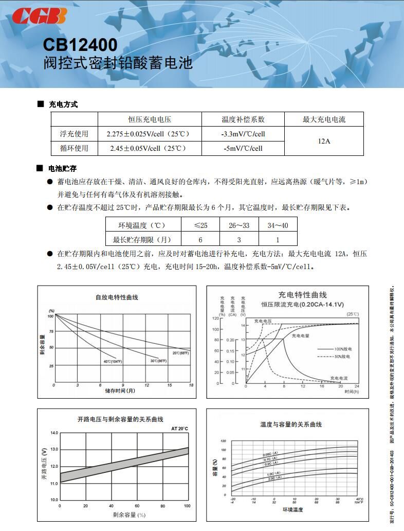 CGB长光蓄电池12V40AH便携设备CB12400是一款专为便携式电子设备设计的蓄电池产品。该电池采用先进的铅酸技术制造,具有稳定的12伏特电压输出和40安时的容量,能够为各类便携设备提供持久可靠的电力支持。